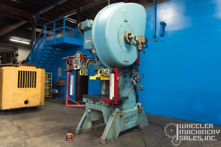 Used Minster #6 60 Ton OBI Punch Press from 1983, Serial #25366. Features: Air Clutch & Brake, Shadow VI Light Curtains, Wintress Smartpac, Auto Lube System, and more. Dimensions: 72"x60"x128", Weight: 14,500 lbs, 20-150 SPM. Perfect for industrial applications.