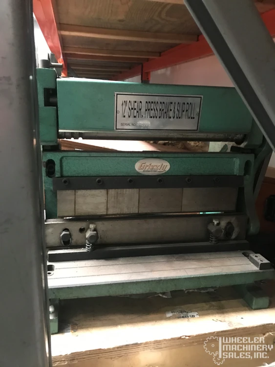 Grizzly T26472Z 3-in-1 Sheet Metal Machine—20 Ga. x 12" capacity. Ideal for diverse projects with 4 fingers and versatile slip roll wire sizes. Max width 12", reverse bend 3/8". Excellent for precise, efficient metalwork. Used condition.