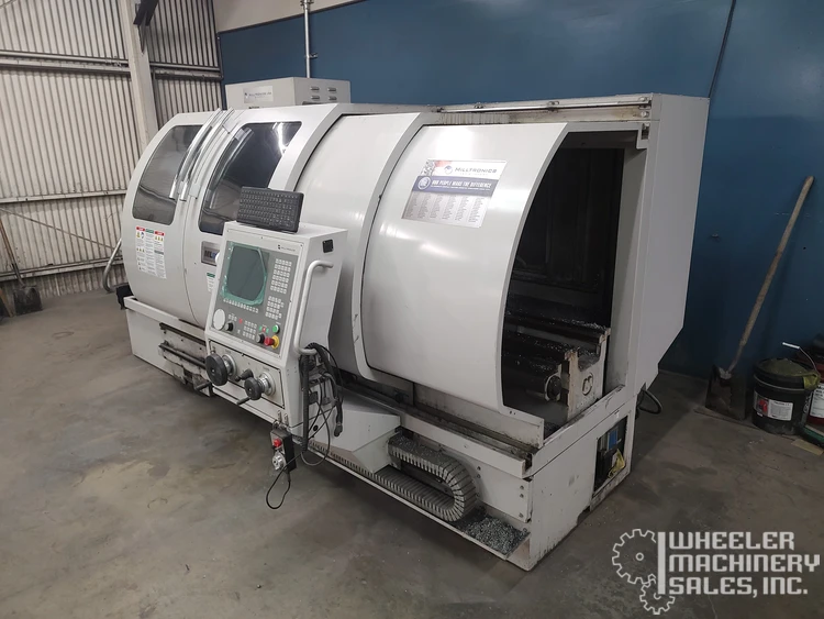 For sale: 2016 Milltronics ML 22/60 Flat Bed CNC Lathe. Featuring 13" X-axis travel, 63.5" Z-axis travel, 23" swing over bed, 2000 RPM spindle, and Milltronics 8200-B CNC control. Equipped with flood coolant, USB port, and full enclosure.