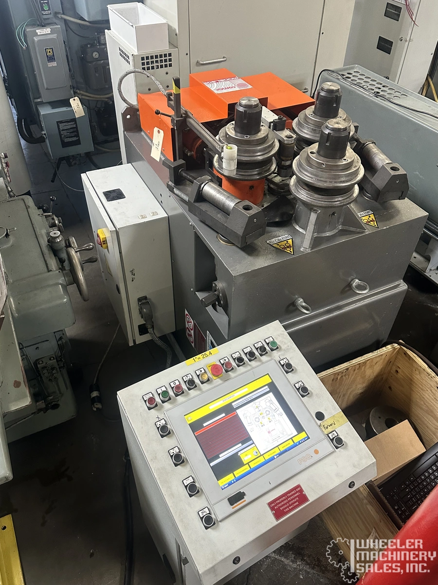 2014 Carell Comac 305CN3.1V 3-Roll CNC Double Pinch Angle Roll for sale. Capable of bending flat bar, square bar, round bar, and more with precision. Features CN3.1V CNC control with radius input. 6.6 HP power, dimensions 52"x41"x51", weight 3,500 lbs.