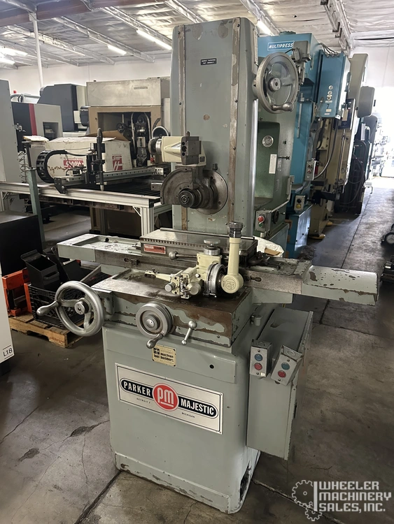 Parker Majestic #2 used surface grinder features a 6" x 18" electromagnetic chuck, 3500 RPM spindle speed, and a 1 HP motor. Ideal for precision grinding tasks. Designed to accommodate three-phase power. Model #7077 #1.