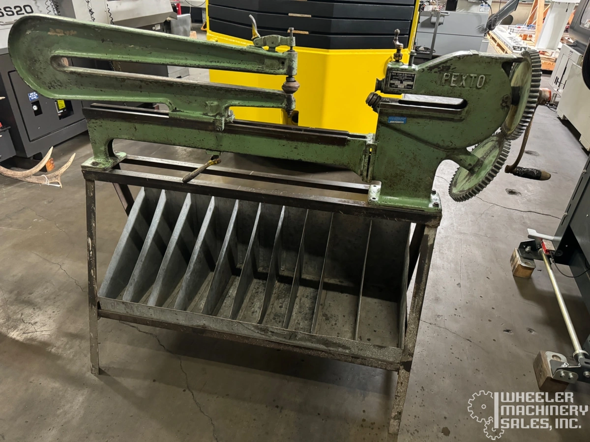 PEXTO 299-C used shear, perfect for precise ring and circle cuts. Handles up to 20-gauge mild steel with cutting depth of 10". Circle capacity 3 1/4" to 42 1/2", weighing 300 lbs. Ideal for industrial and workshop applications.