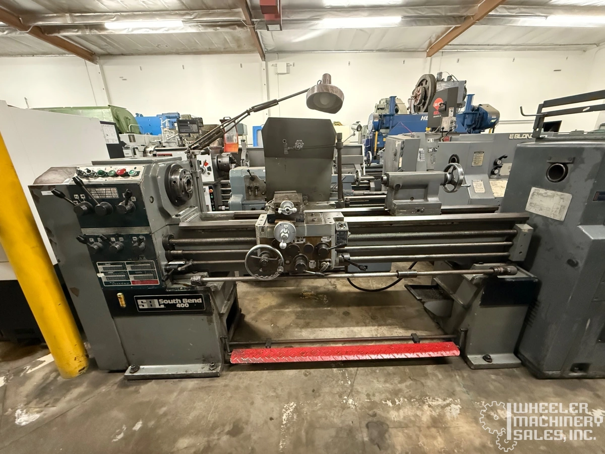 Used South Bend 400 engine lathe available. Features a 15" swing, 40" centers, and 2" spindle bore. Ideal for precision machining needs. Known for its reliability and performance, this lathe is a valuable addition to your workshop.