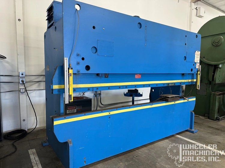 Used Standard AB100-12 CNC hydraulic press brake available. With 100/66-ton capacity, 12-ft bed/ram, and 10'5" between frames, it's equipped with Automec CNC 300 Autogauge, foot switches, and light curtains. Shipping weight 21,000 lbs.