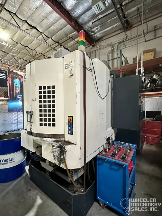2006 MAKINO A51 Horizontal Milling Machine, used condition. Features 15.7" table, 22" long/cross travel, 23.6" vertical travel, CAT 40 taper, 25 power. Reliable and precise for your machining needs.