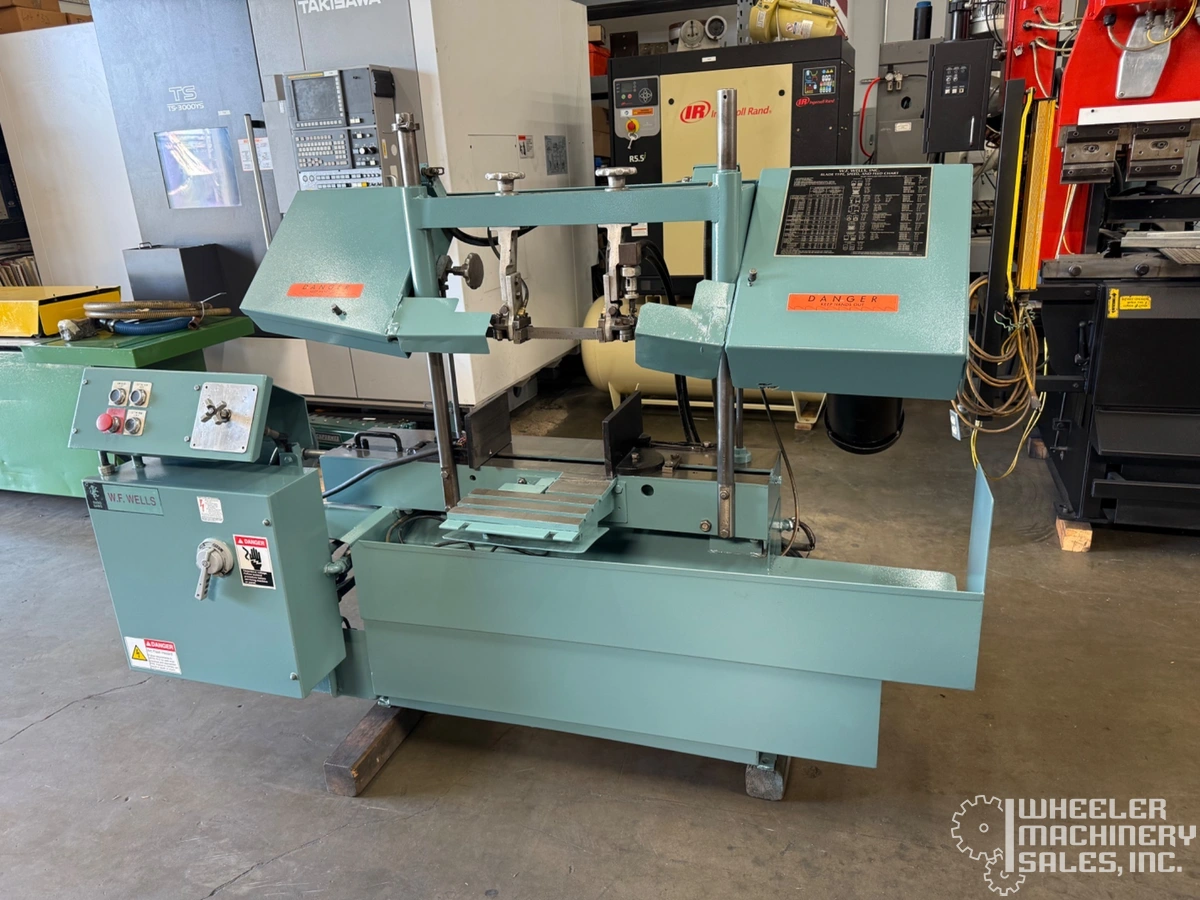 W.F. Wells W-9-1, a used horizontal band saw. Known for precision and durability, this model is ideal for various cutting applications. Perfect opportunity for those seeking reliable performance from a trusted manufacturer.