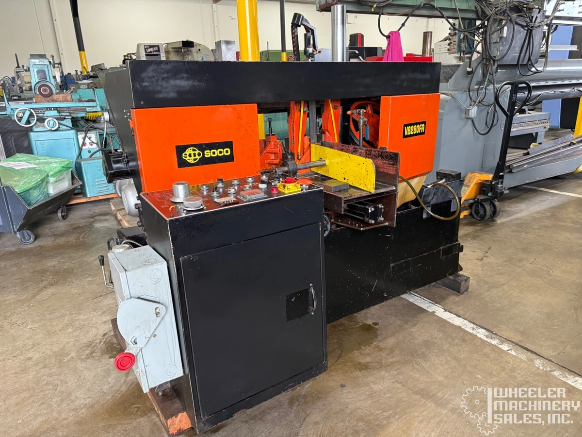 SOCO VB280FA Automatic Horizontal Band Saw, used condition. Precision cutting tool ideal for various industrial applications. Renowned for durability and efficiency, this equipment can enhance your operational capabilities.