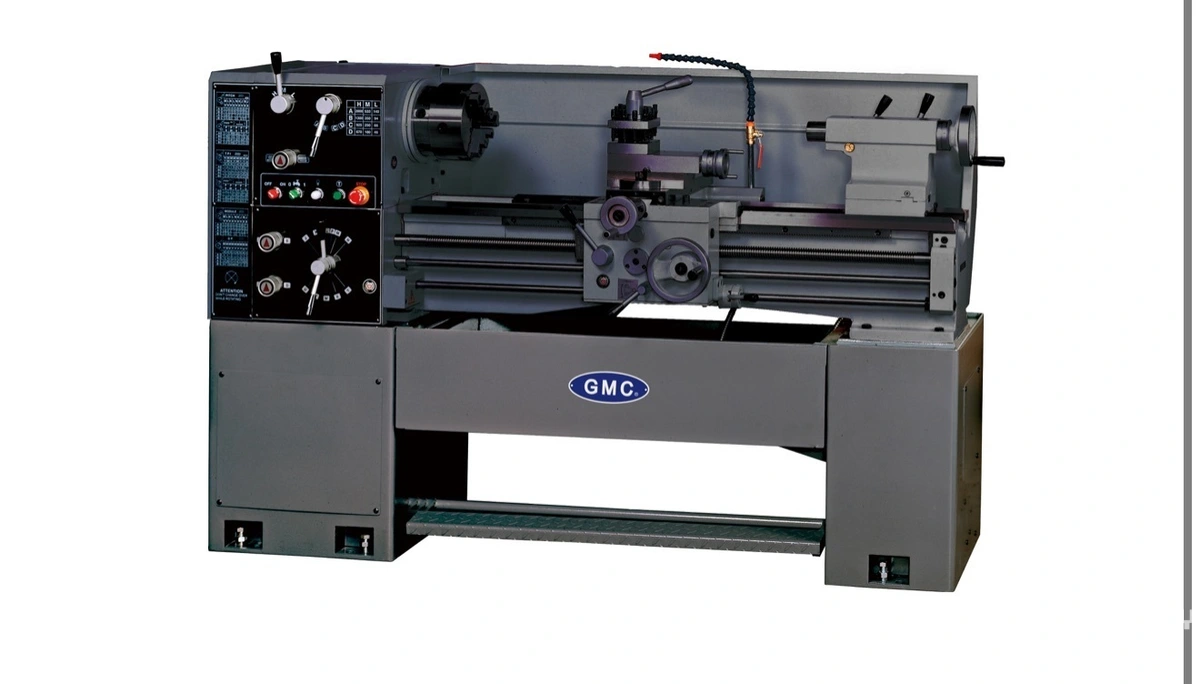 GMC GML 1660 AT used engine lathe: 16" swing, 60" centers, 2.0625" spindle bore, 5 hp, 2,000 RPM. Swing over cross slide: 9.5". Sturdy build: 3,630 lbs, dimensions 82"x34"x60". Voltage options: 220V/440V, 3 phase. Ideal for precision machining.