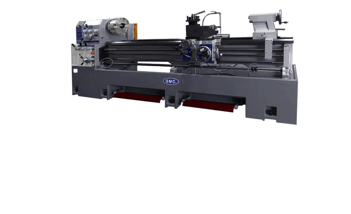 Discover precision with the new GMC GML-33120T engine lathe. Max swing over bed: 33", workpiece length: 120", spindle speeds: 10-1000 rpm. Features include a 15HP motor, 12" 3-jaw chuck, and automatic lubrication. Ideal for heavy-duty machining.