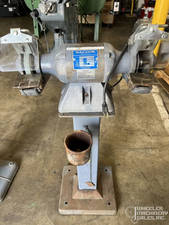 Baldor 712 Pedestal Grinder, 7" wheels, 1" width, 0.625" bore, 3,600 RPM. Powered by a 1/2 HP single-phase motor. Condition: used.