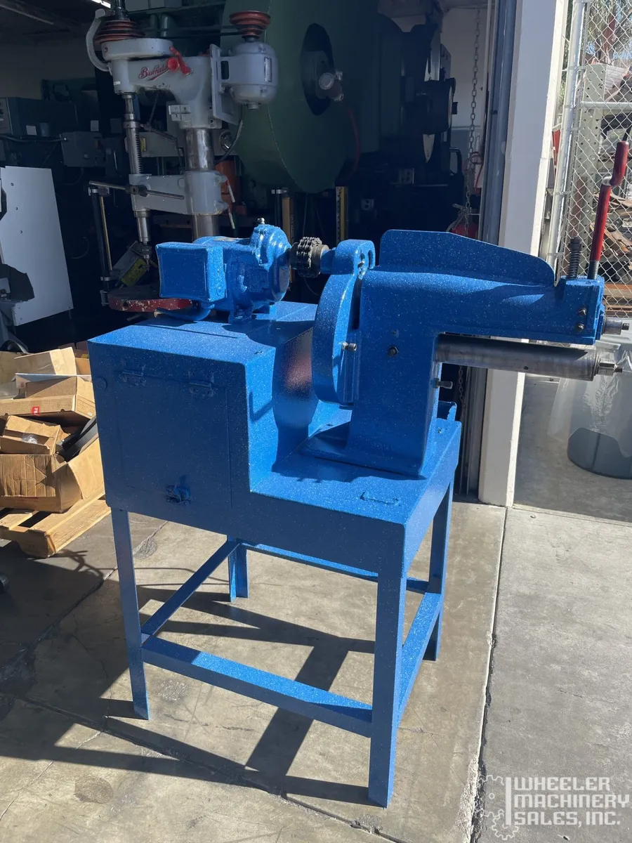 Explore the Pexto 617-A Power Beader, perfect for your sheet metal operations. This used machine can handle mild steel up to 18 ga. and features 3" horizontal centers. Weighing 475 lbs, it operates on 230 or 460V, 3-phase power. Dim: 55"x39"x15".