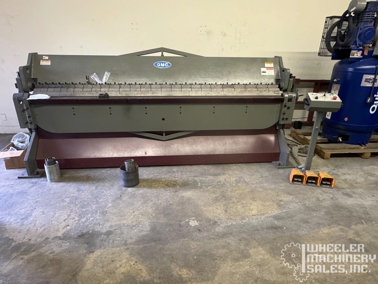 For sale: 2021 GMC HBB-1014 10' Hydraulic Sheet Metal Brake. Used, 14-gauge capacity, ideal for bending mild steel, stainless steel, and aluminum. Features a manual back gauge, 5 HP motor, and 153mm max box depth. Contact for more details.