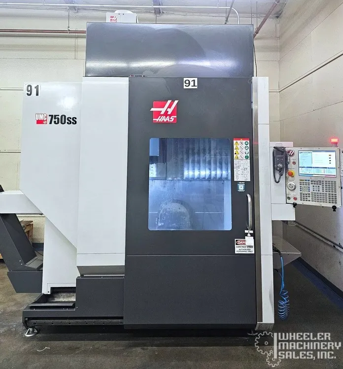 2017 HAAS UMC-750SS 5-Axis Machining Center: Experience high-speed machining with a 15,000 RPM spindle, 40-position ATC, 2-axis trunnion table, and advanced HAAS CNC control. Features Renishaw wireless system and dynamic work offsets. Great for precise projects.