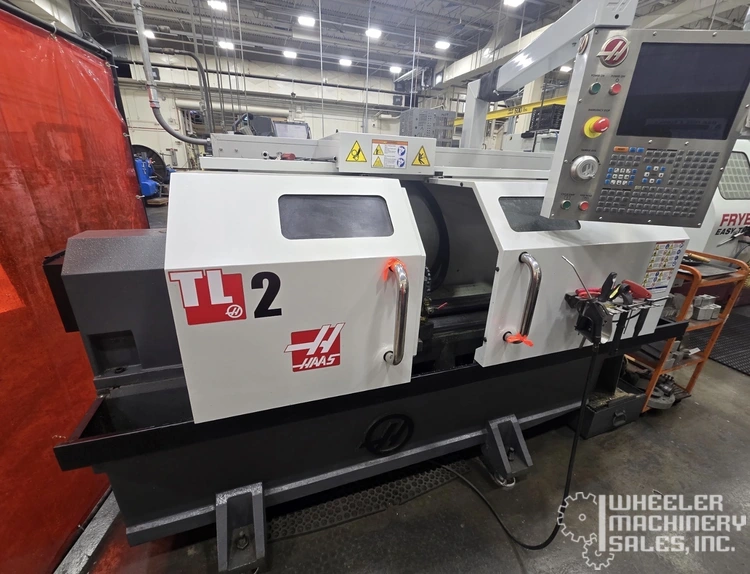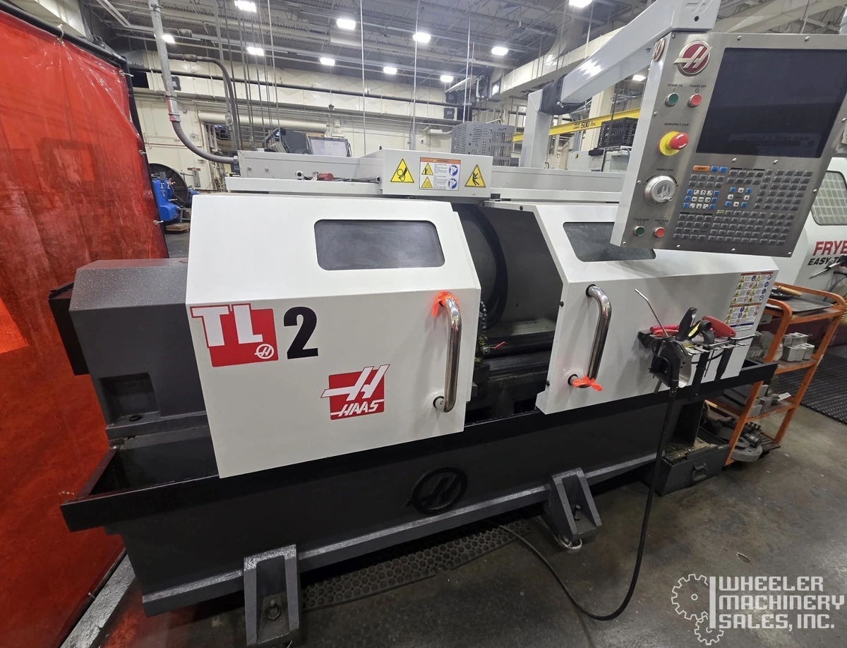 2015 Haas TL-2 CNC Lathe w/ Tailstock #8101 #2, HAAS model TL-2, CNC flat bed lathe. Bar capacity: 2”, spindle speed: 2000 RPM, motor: 10 HP, max turning diameter: 16”, max turning length: 48”, weight: 5,900 lbs. Includes full enclosure, 8-position turret, and Haas CNC control.