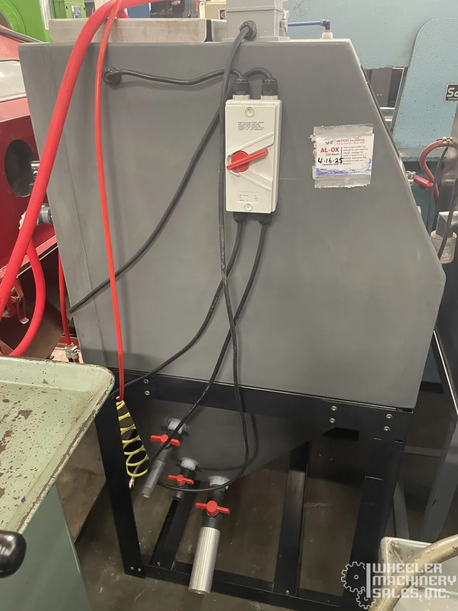 VAPOR HONING TECHNOLOGIES Weekend Warrior wet blast unit, used. Features include 110V power, high-volume slurry pump, boron carbide gun tips. Internal working dimensions: 33" W x 30" D x 28" H. Requires 7.5HP compressor, 20-30 CFM, 60-100 PSI.