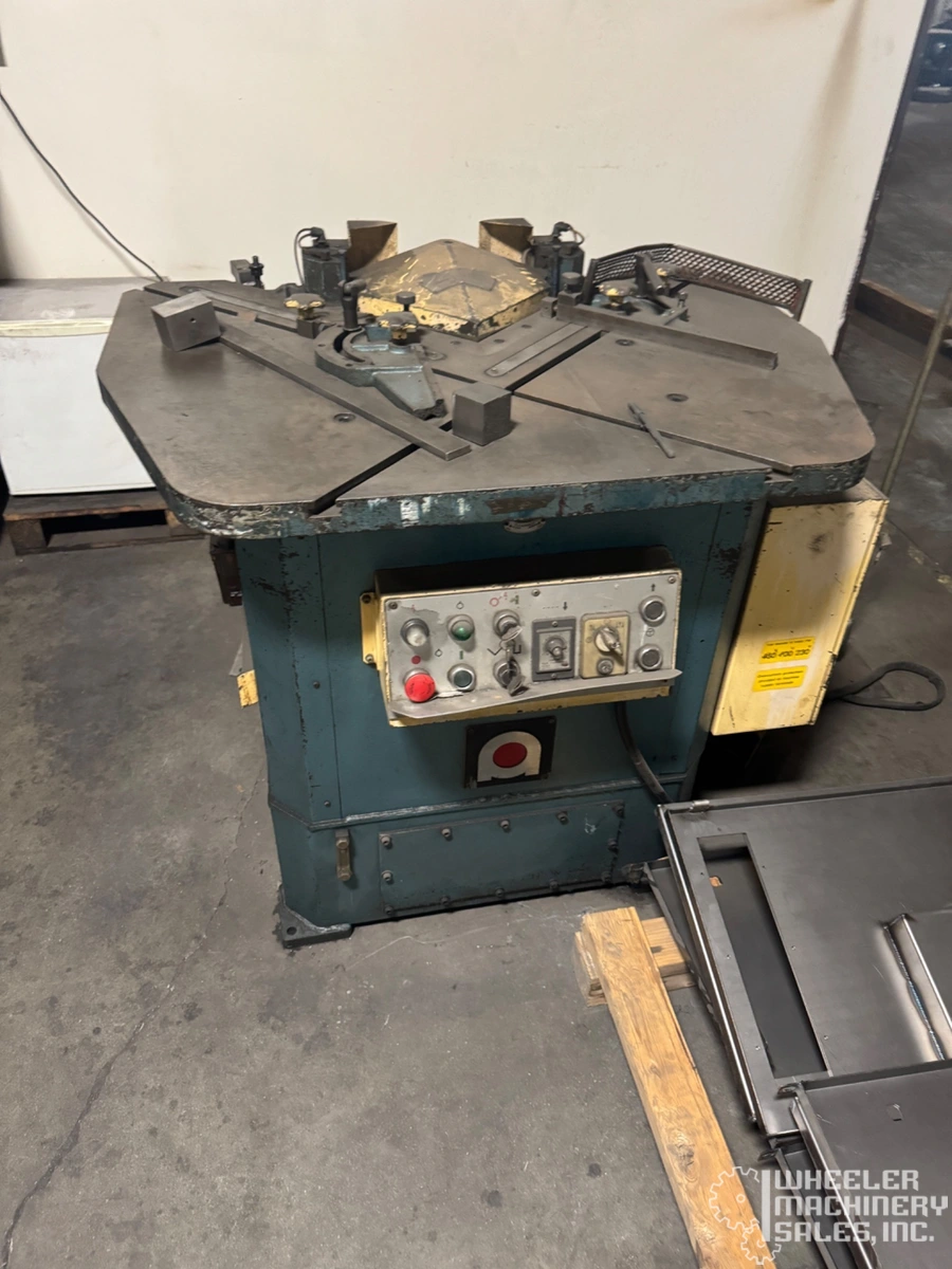 AMADA CS-220 Hydraulic Corner Notcher, perfect for precise notching. Handles up to 0.135" (10 gauge) thickness with an 8.62" x 8.62" stock capacity. Reliable used equipment for your fabrication needs.