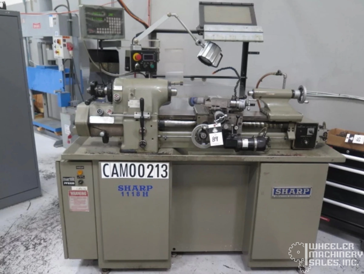 2003 SHARP 1118H Precision Toolroom Lathe available. This used lathe from SHARP offers reliable performance for precision work, making it an ideal choice for jeweler and toolroom applications. Model: 1118H.