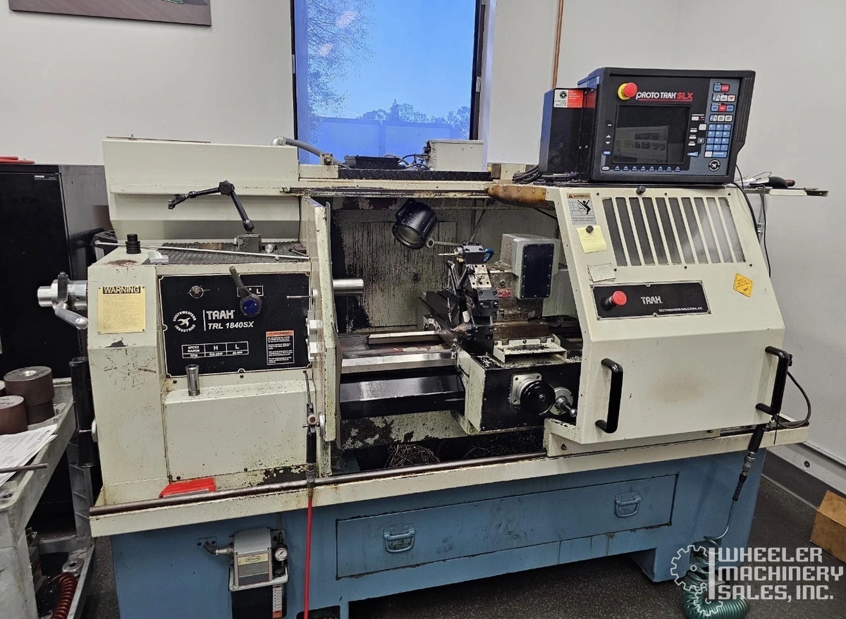 Southwestern Industries Trak 1840SX CNC Lathe for sale. Featuring ProtoTrak SLX CNC controls, a Dorian Smartdex 25N turret, swing over bed 18.5", and spindle speed 80-2500 RPM. Perfect for precision metalworking.